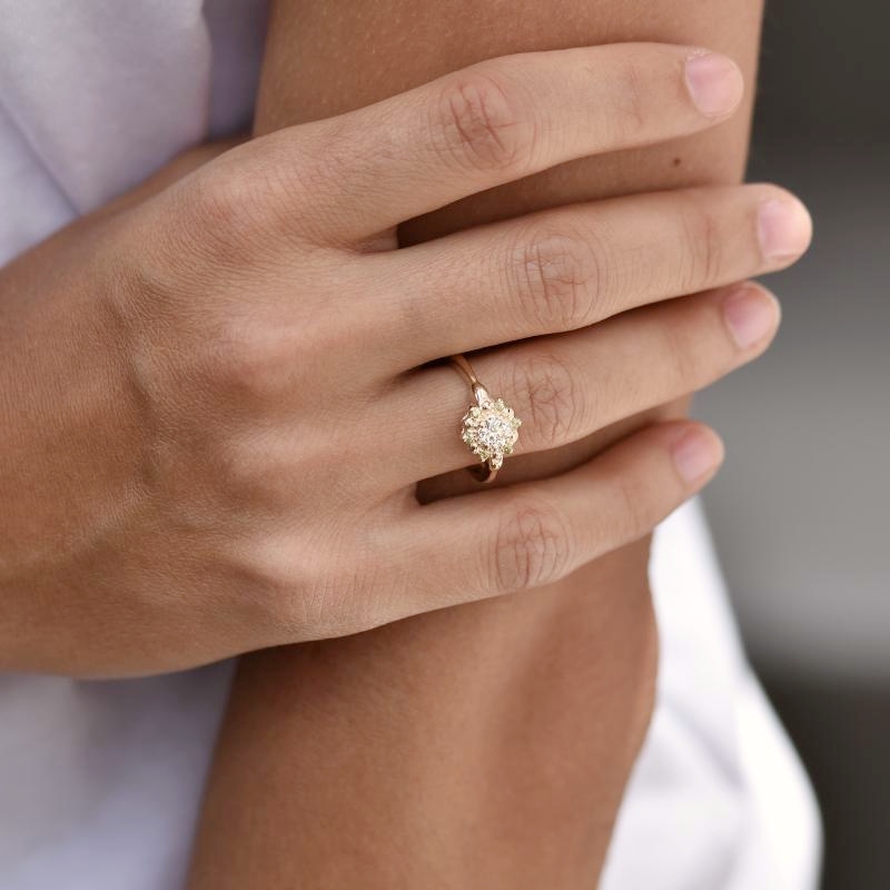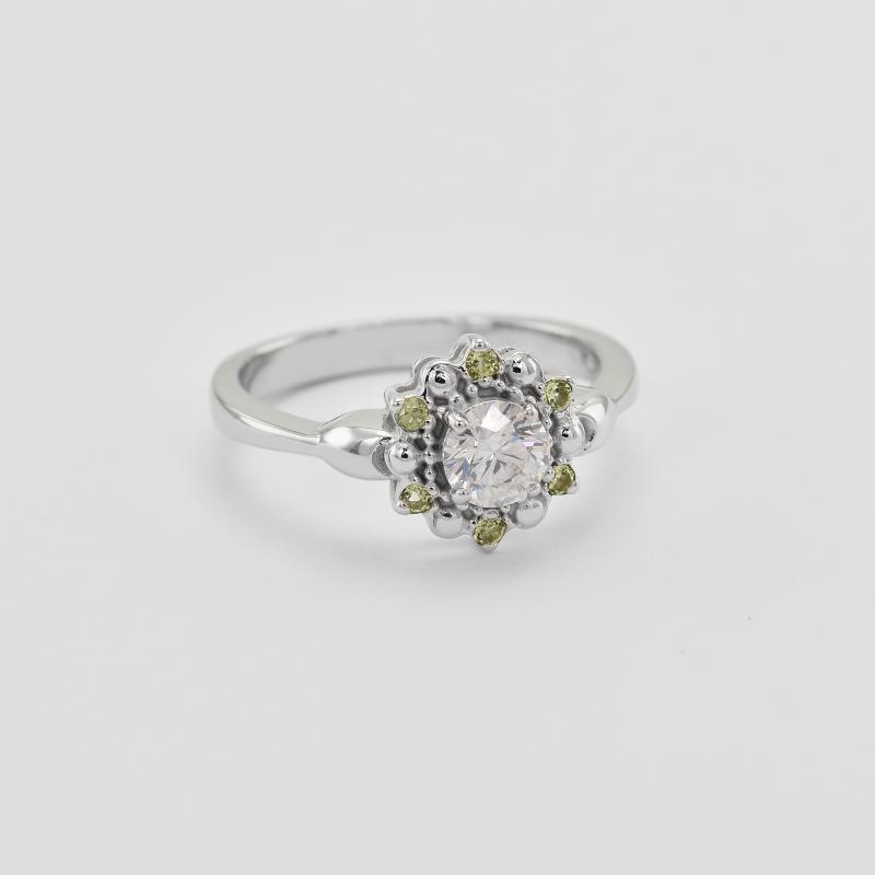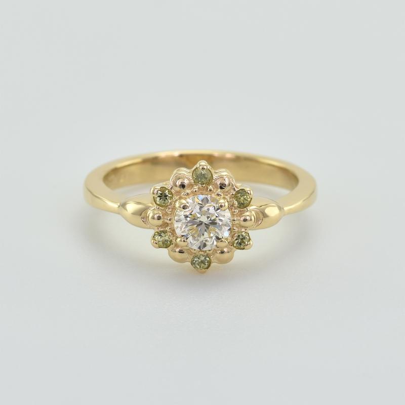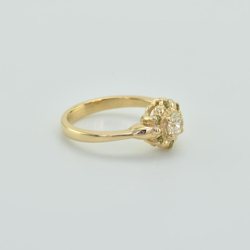 Goldener Verlobungsring mit Olivin und Diamanten Dylah