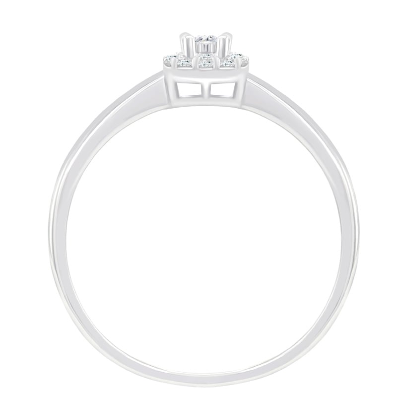 • der Verlobungsring ist mit einem zentralen und elf seitlichen Diamanten geschmückt
