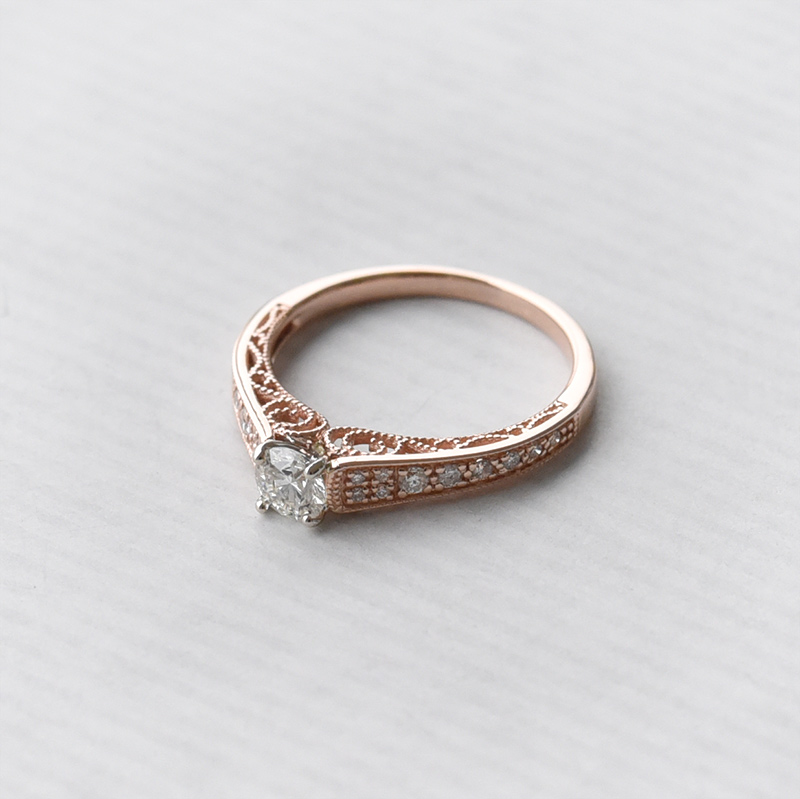 • dieser Ring in Roségold mit einem zentralen Diamanten und vielen Seitendiamanten ist wie geschaffen für Ihre Herzensdame