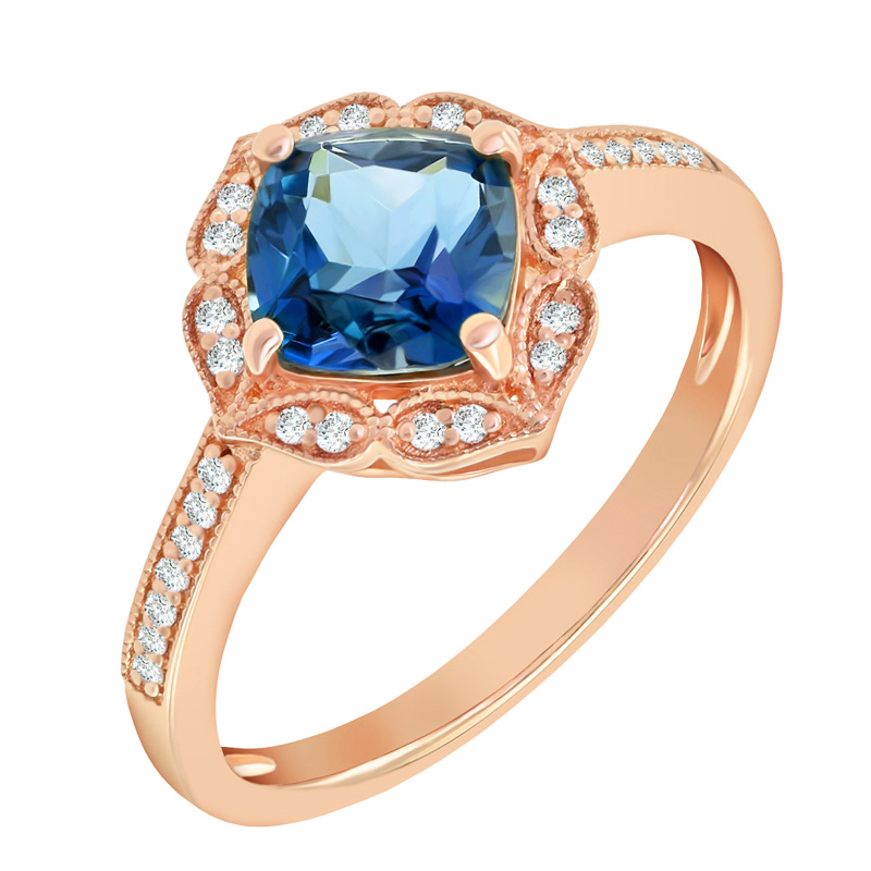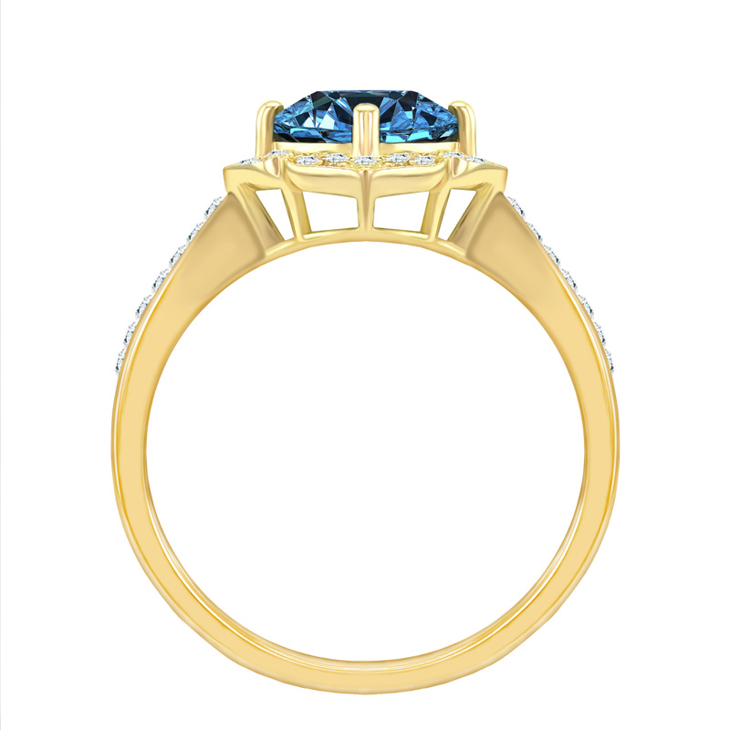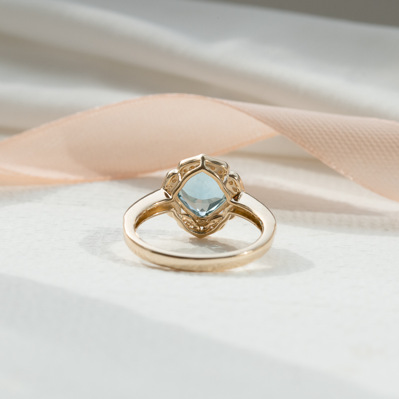 Goldener Vintagering mit blauem Topas und Diamanten Antonella