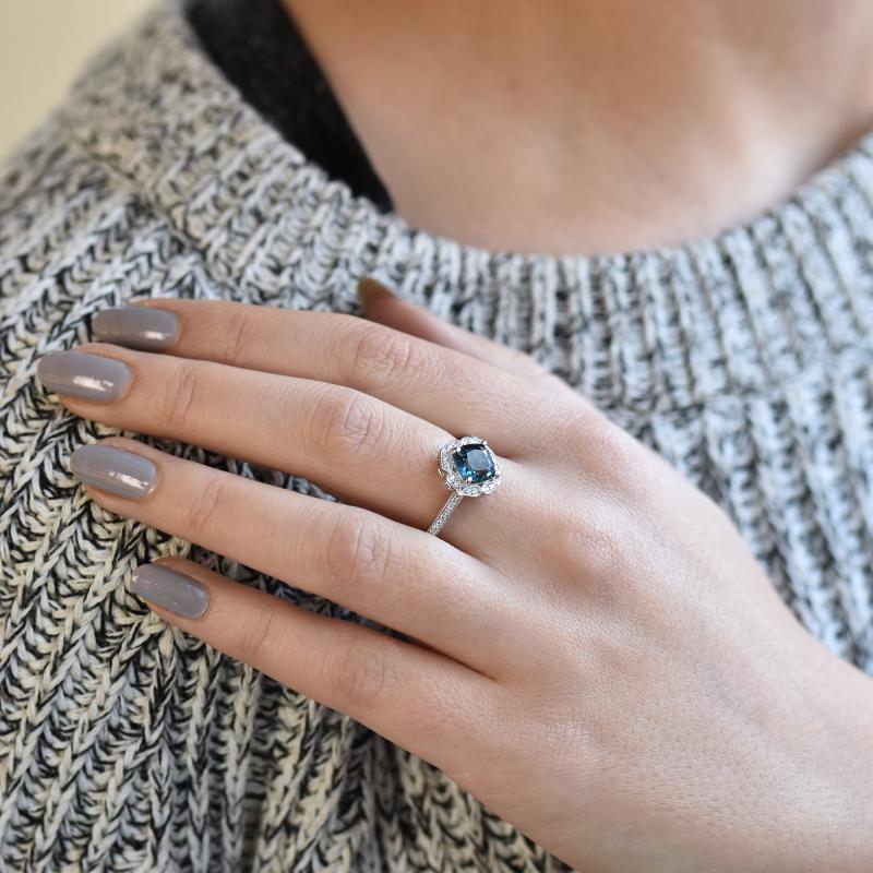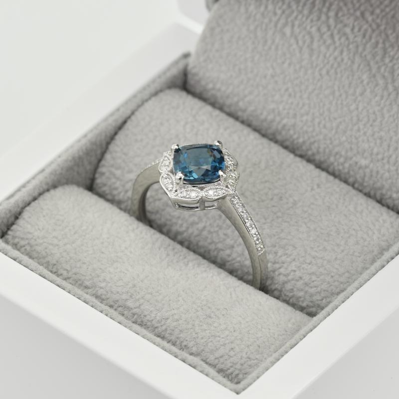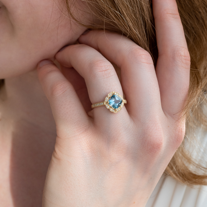 • der blaue Topas verbindet den Vintage-Stil und moderne Linien