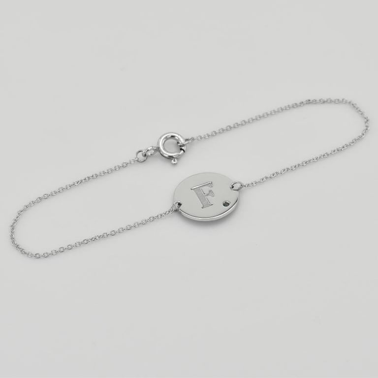 • apartes Goldarmband mit runder Platte für eine Gravur mit einem Diamanten