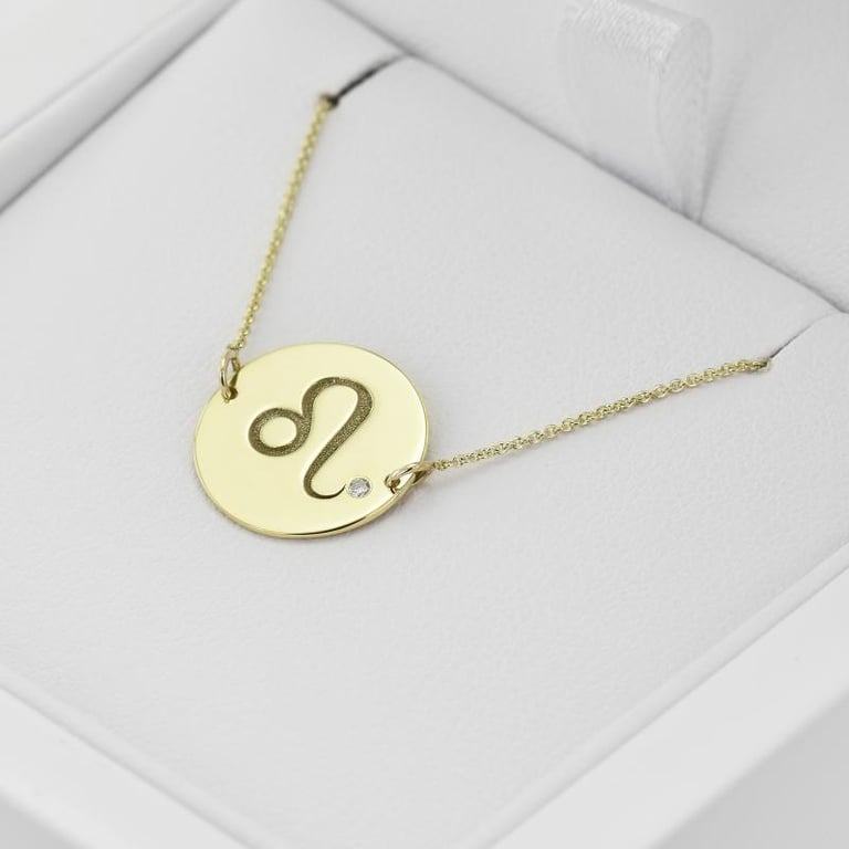 • das goldene Armband ist mit dem Sternzeichen Löwe und seinem Geburtsstein, einem funkelnden Diamanten als König der Edelsteine verziert ist