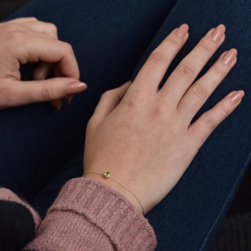 • zartes goldenes Armband mit rundem Olivin oder auch Peridot