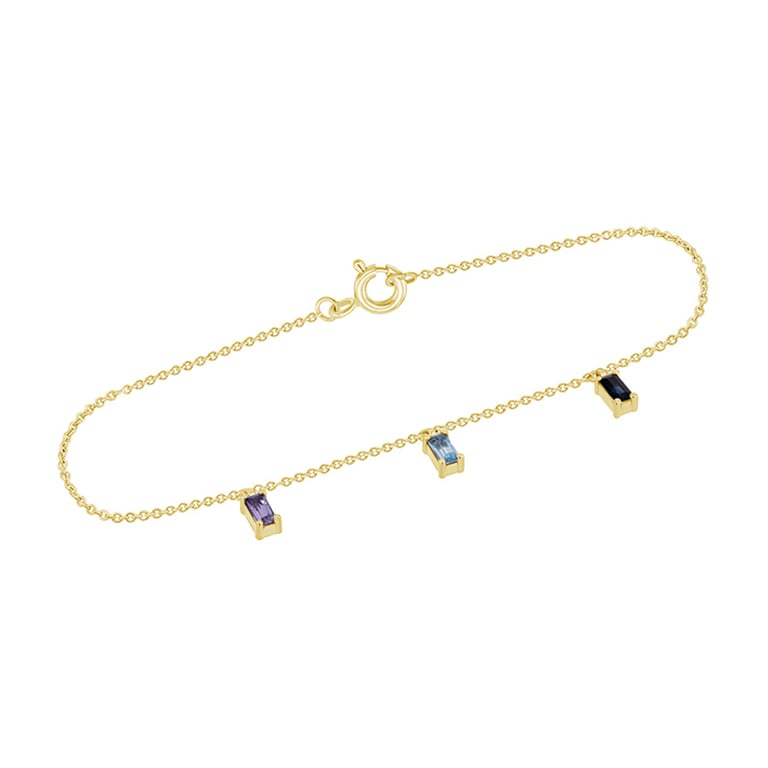 • ein Trio von Edelsteinen im zarten Armband aus recyceltem Gold