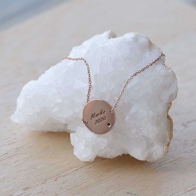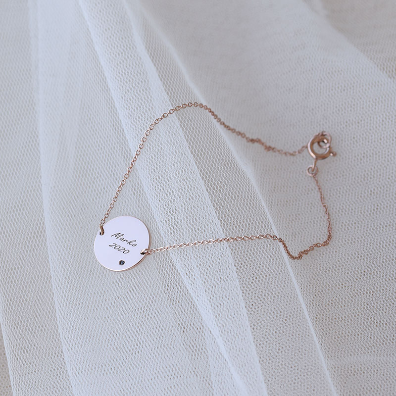 • dezentes Goldarmband mit runder Platte für eine Gravur mit einem Diamanten