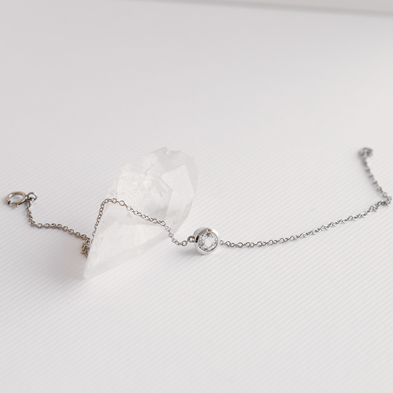 • ein weißer, rund geschliffener Topas ist der Mittelpunkt des Goldarmbandes