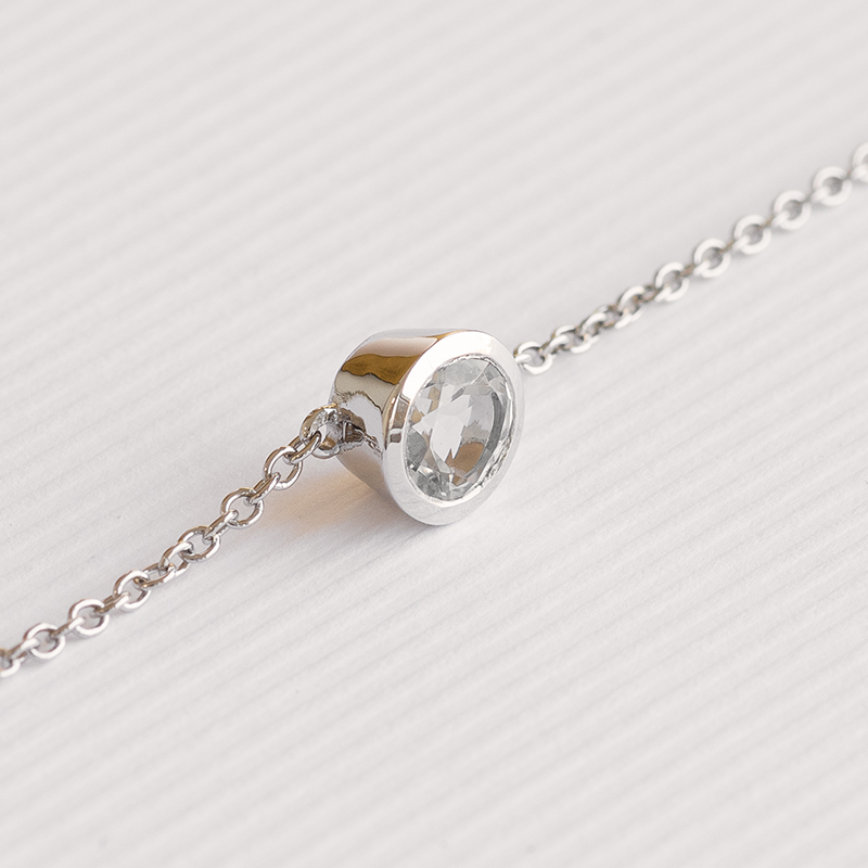 • die minimalistische Fassung und das Gelbgold betonen die weißen und silbernen Reflexe des Topas
