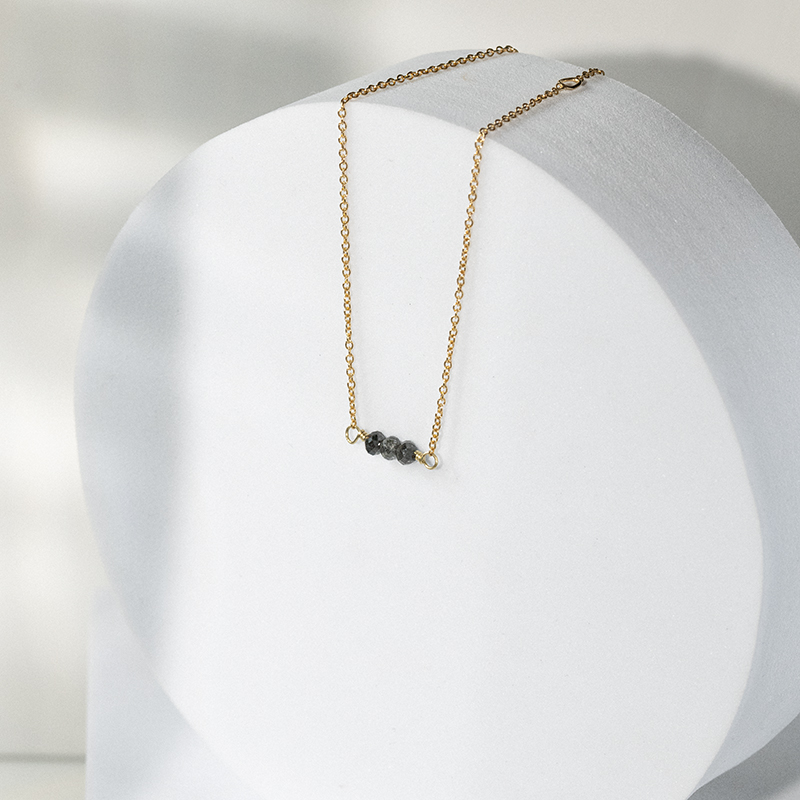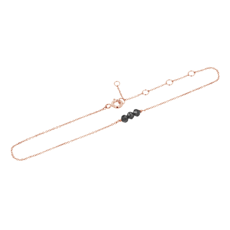• das Fußkettchen zieren drei runde seidig graue Salt´n Pepper Diamanten