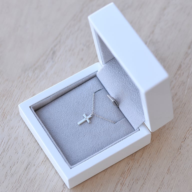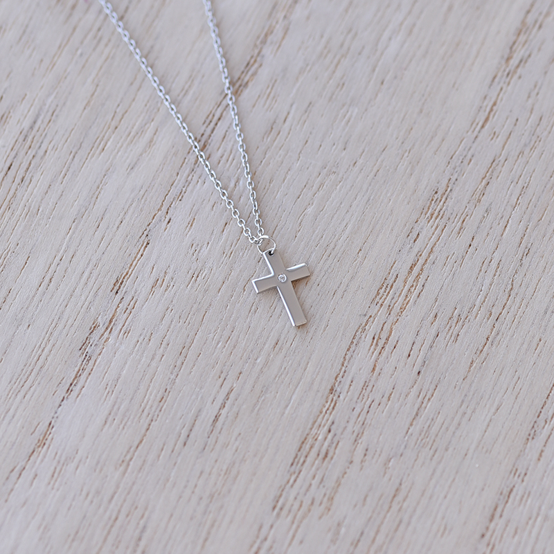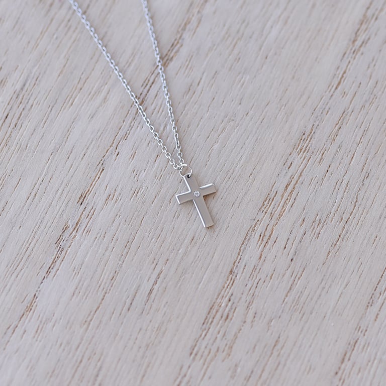 • Goldkette für Kinder mit einem diamantengeschmückten Kreuz