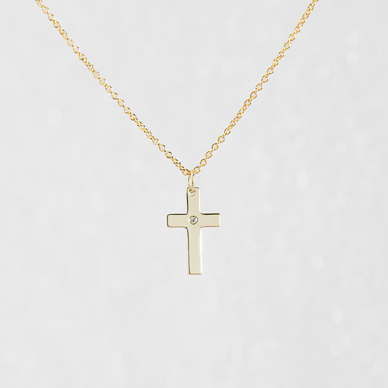 Goldenes Kreuz für Kinder mit Diamanten Elame