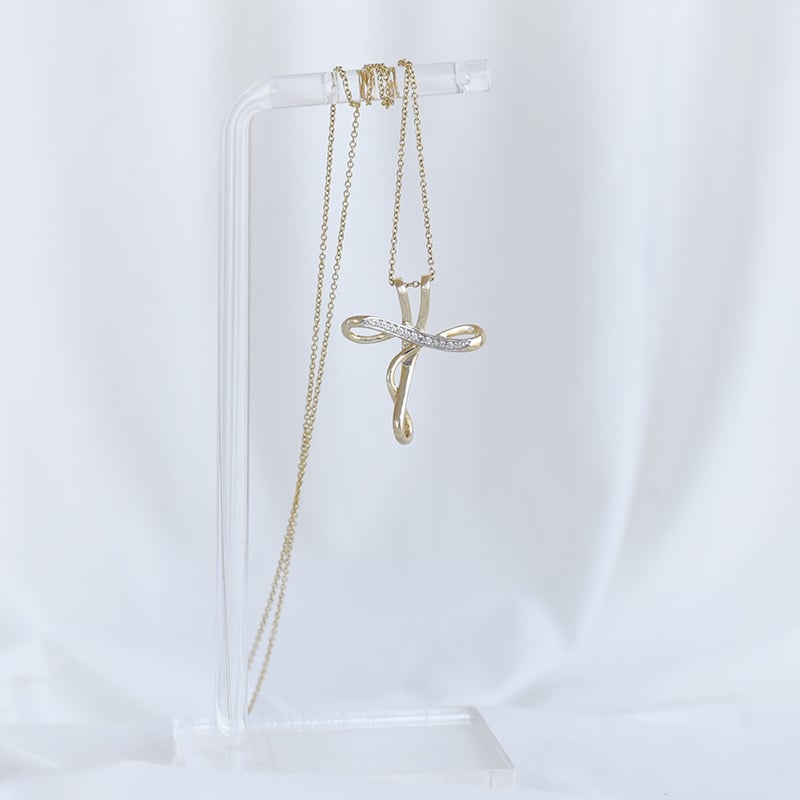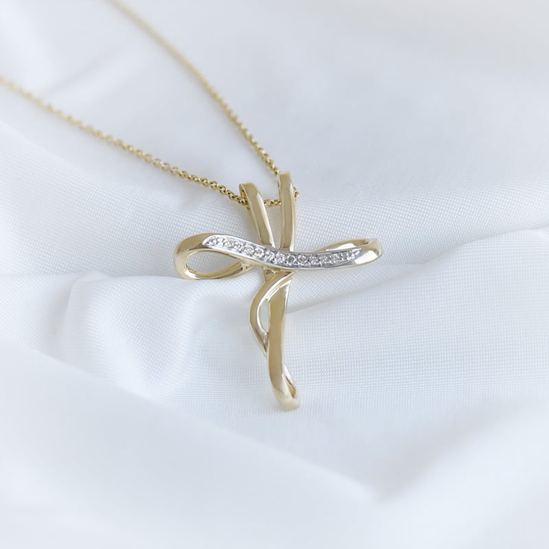 • ein dezentes Schmuckkreuz aus Gold mit strahlenden Diamanten