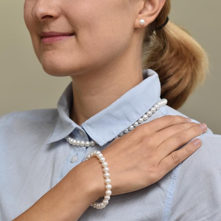 Goldenes Schmuckset mit 7-7.50mm Perlen Doretta