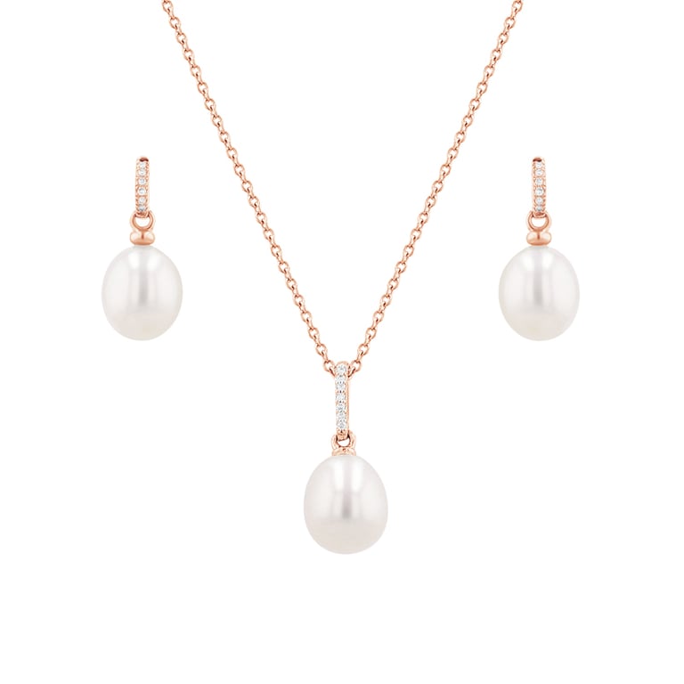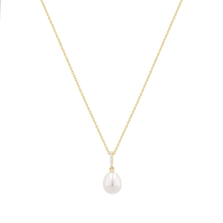 • die goldene Perlenkollektion in Weiss wird von zarten Diamanten ergänzt