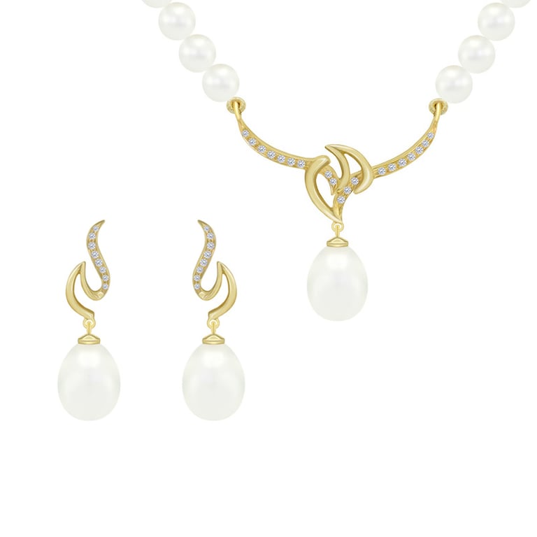 Goldenes Schmuckset mit Perlen und Diamanten Giusepina