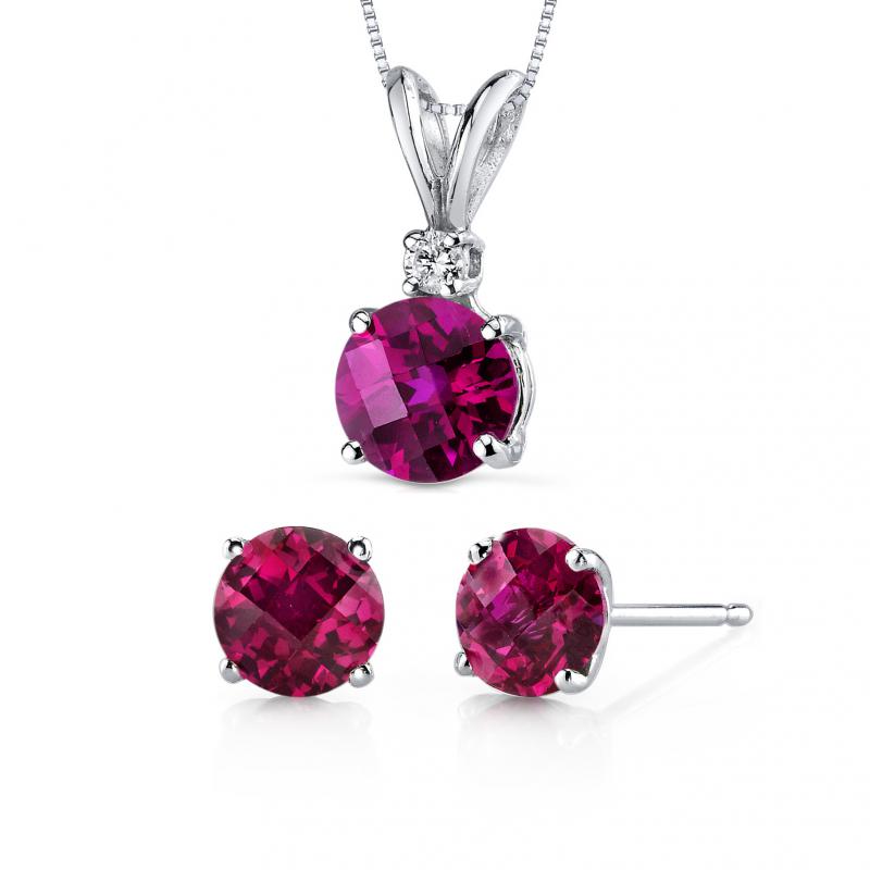 Silbernes Set aus Perlenschmuck mit Lab Grown Rubinen Jasna