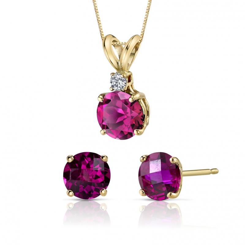 • beim goldenen Schmuckset fällt der Blick sofort auf die runden Rubine in sattem, dunklem Pink