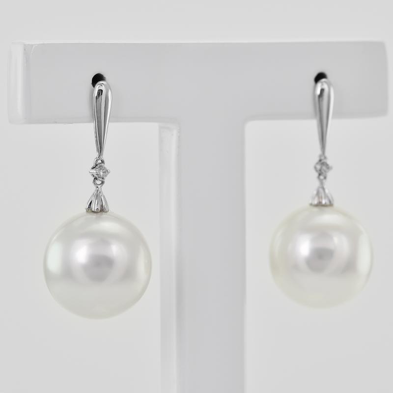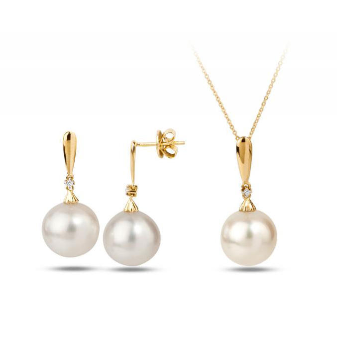 Goldenes Set mit weißen Südseeperlen und Diamanten Santonie