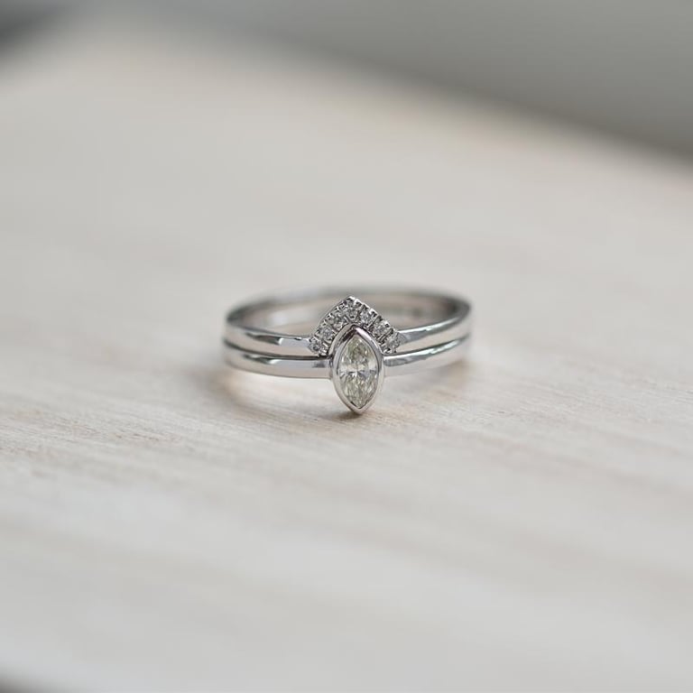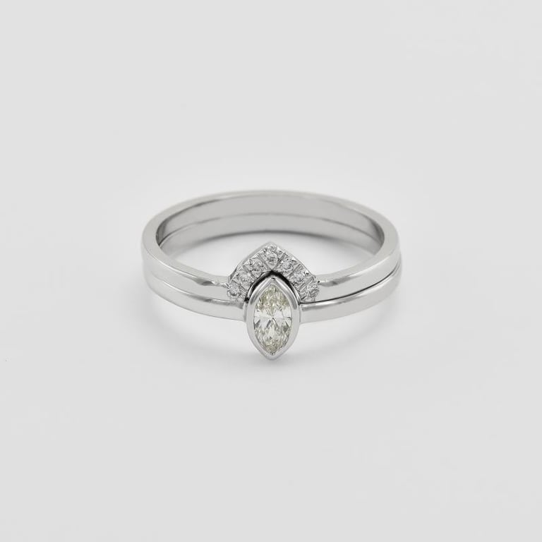 • der Verlobungsring wird von einem natürlichen Marquise-Diamanten