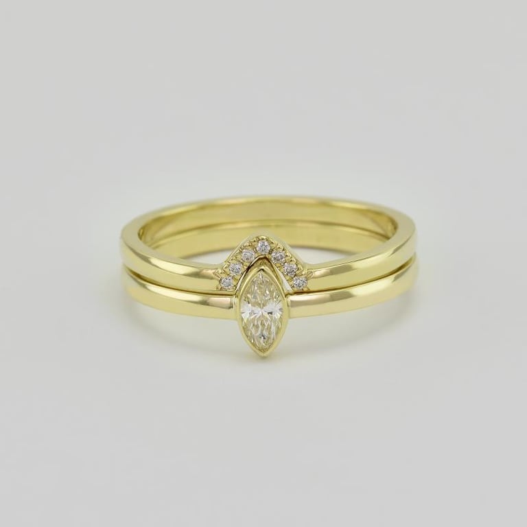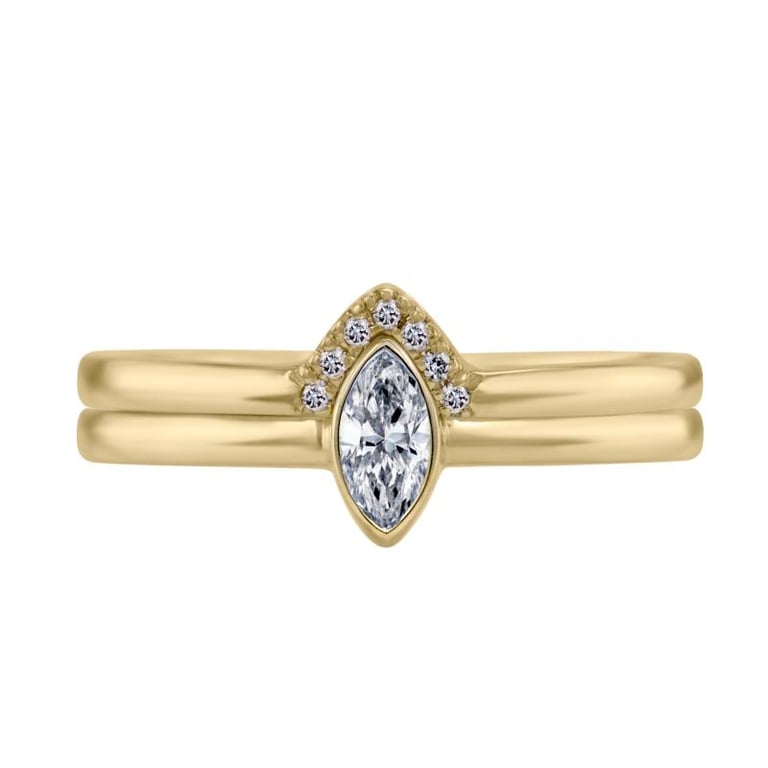Goldenes Set mit zertifiziertem Diamant im Marquiseschliff Eliwa