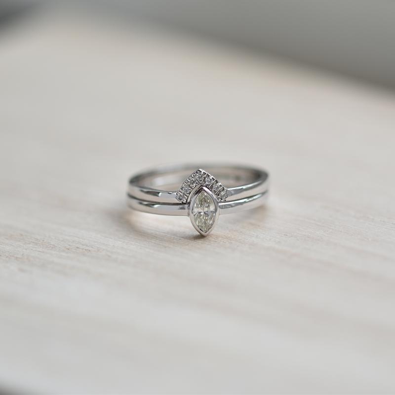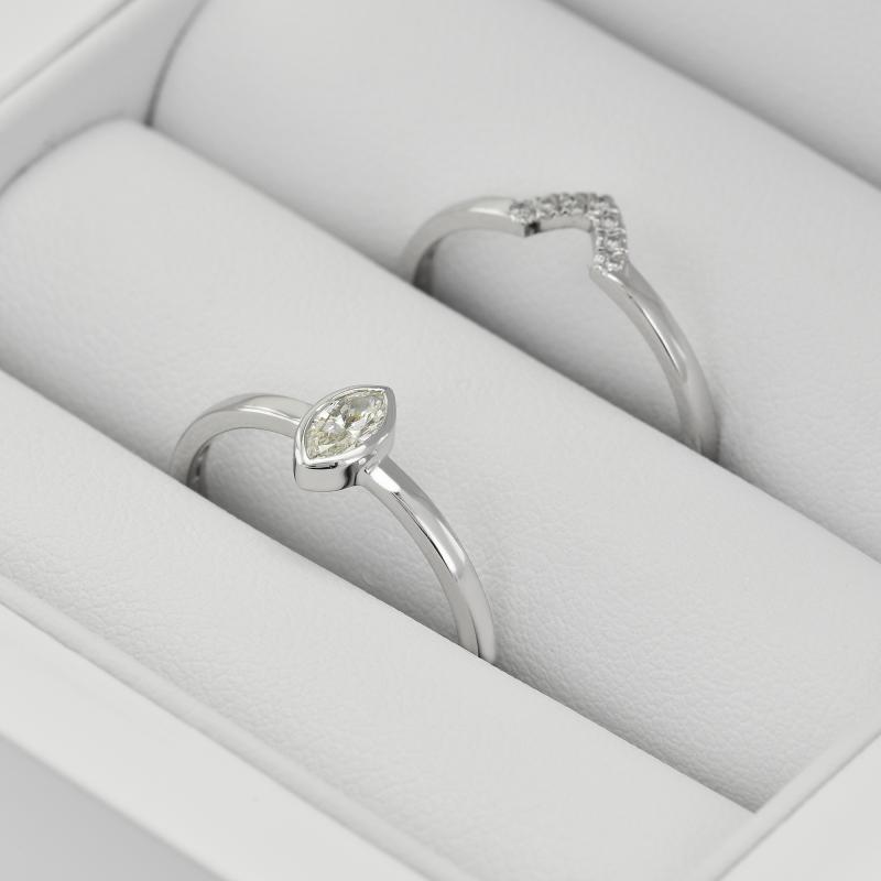 • die wunderschönen Ringe sind mit einen zertifizierten Diamanten im Marquiseschliff besetzt