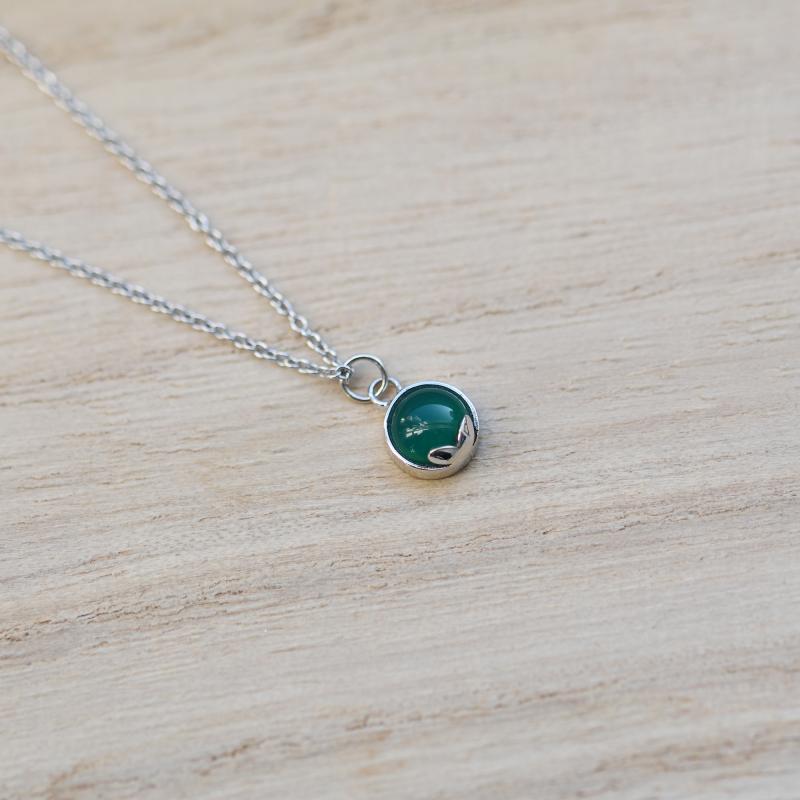 • zu diesen Schmuckstücken gehört auch diese Cabochon-Halskette mit grünem Onyx