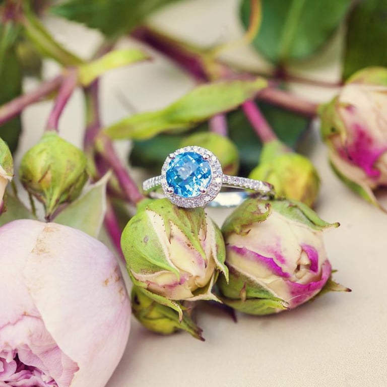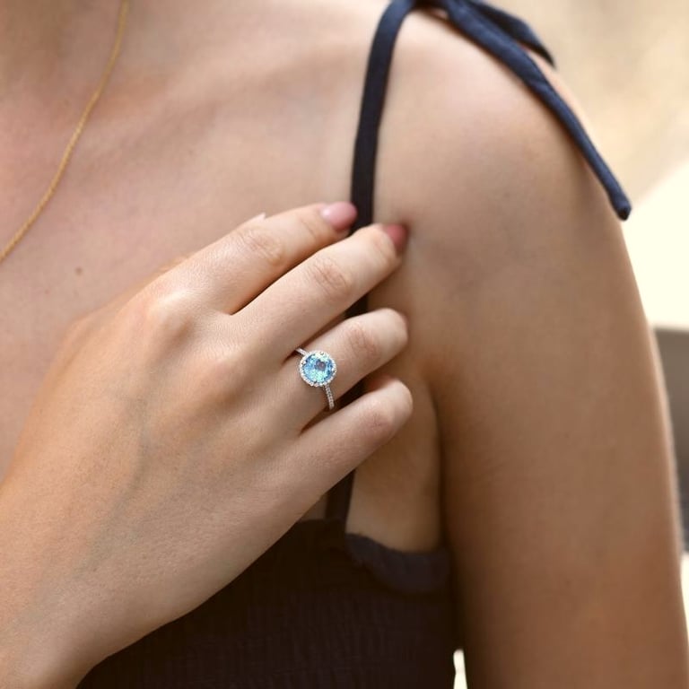 • der goldene Ring mit Topas und Diamanten erinnert an den Himmel im Sommer