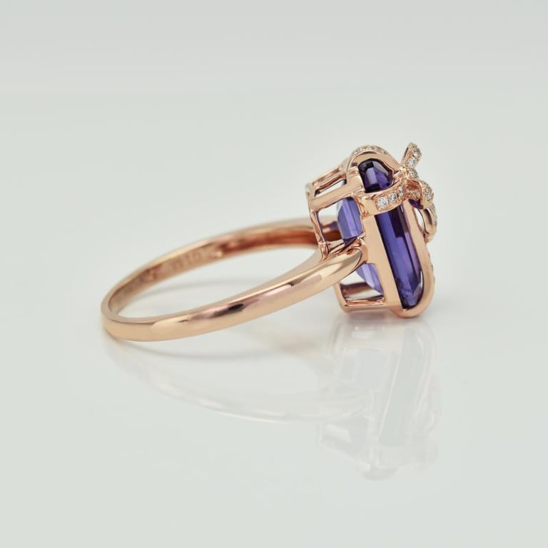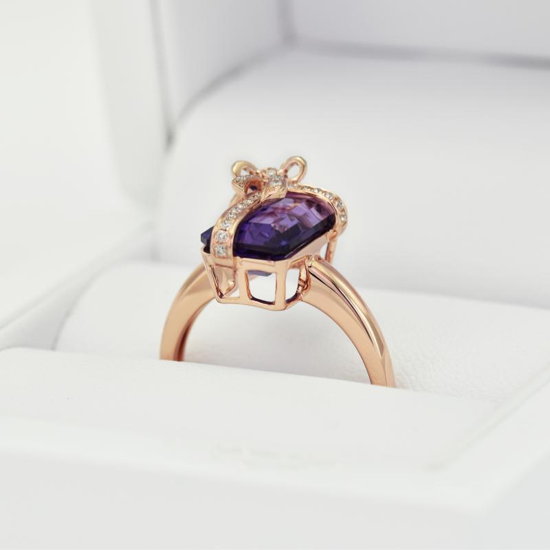 • ein farbenfroher Ring aus Roségold mit eindrucksvollem Amethyst