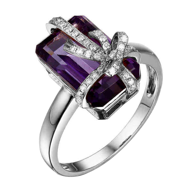 Goldring mit Amethyst mit Diamantschleife Edreen