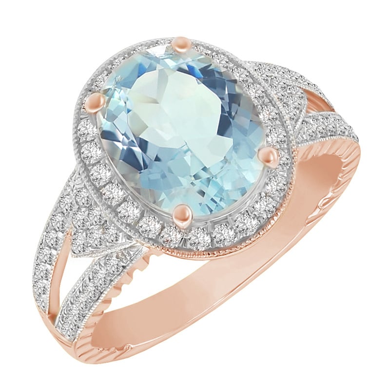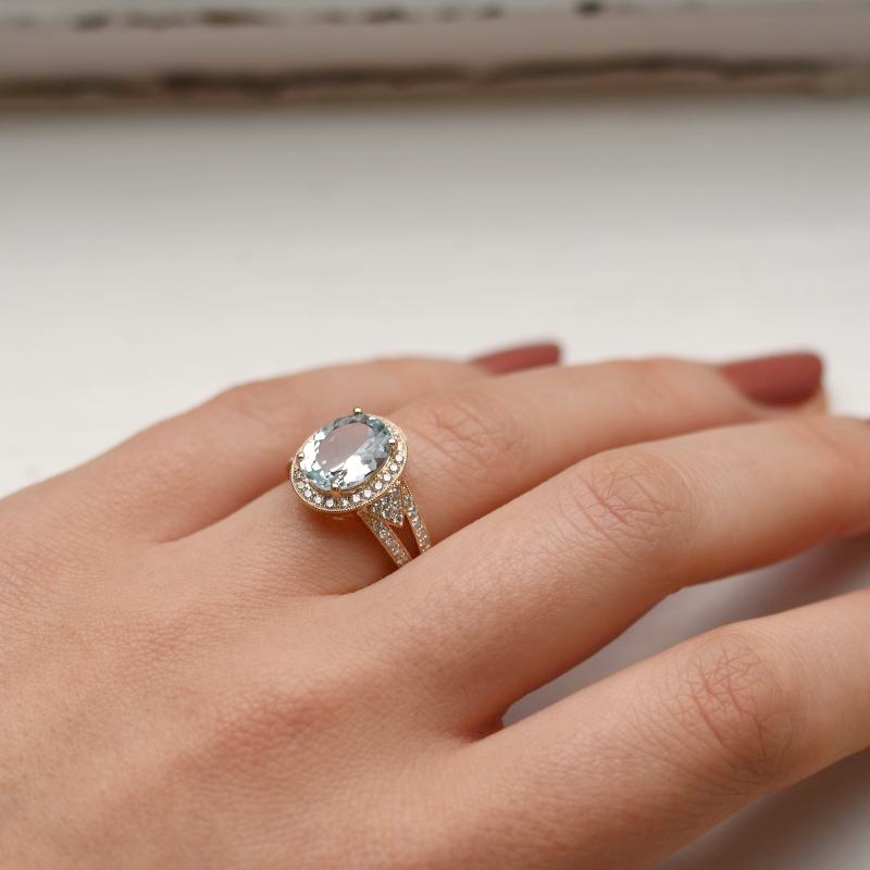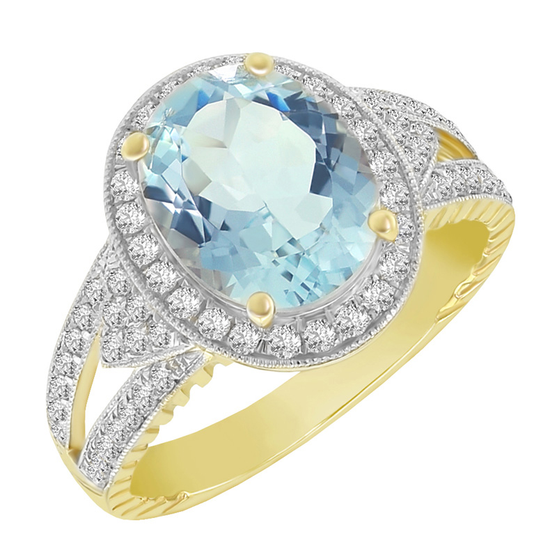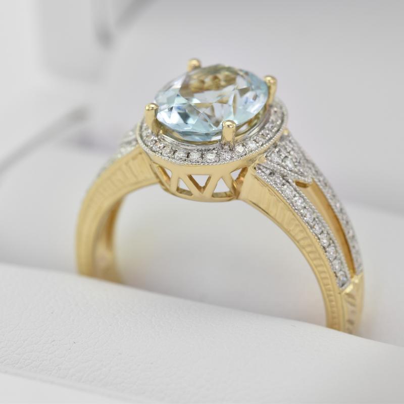 • ein opulenter aparter Goldring mit himmelblauem Aquamarin und Diamenten