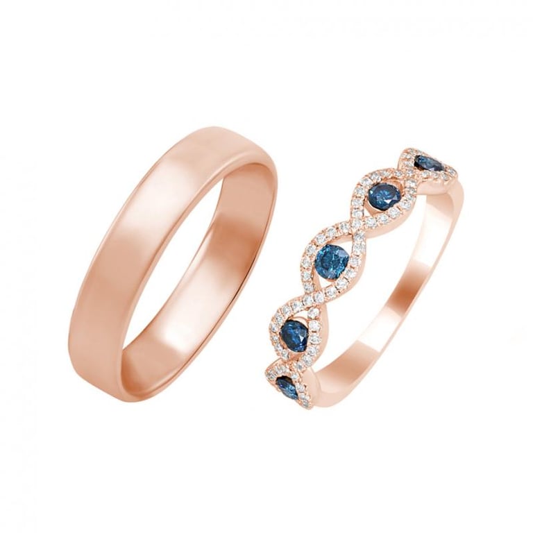 Goldring mit blauen Diamanten und Komfort Trauring Sanvi