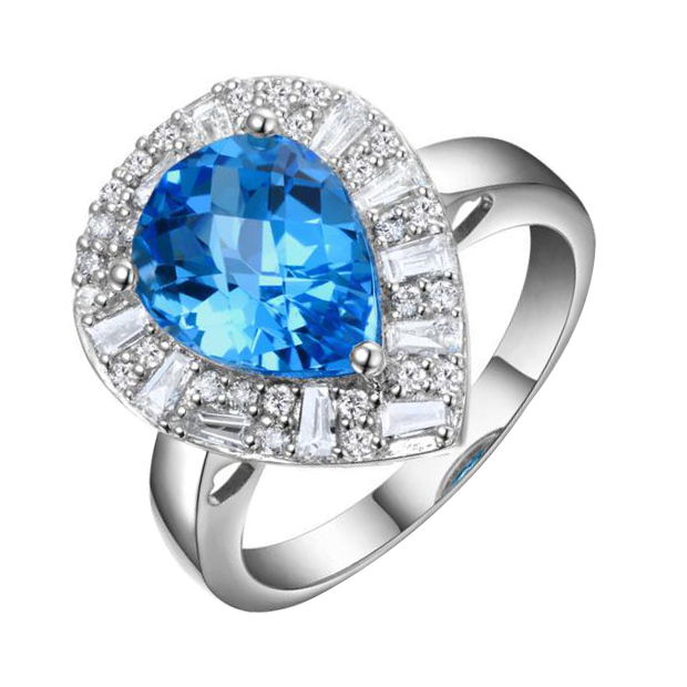 • luxuriöser Weißgoldring mit Topastropfen im Diamantenhalo