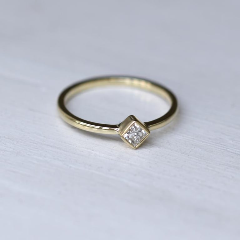 • die Geschichte dieses Damenrings in Gold mit einem wunderschönen Prinzessdiamanten wird nicht nur von seinem Besitzer, sondern auch von seiner Umgebung geliebt