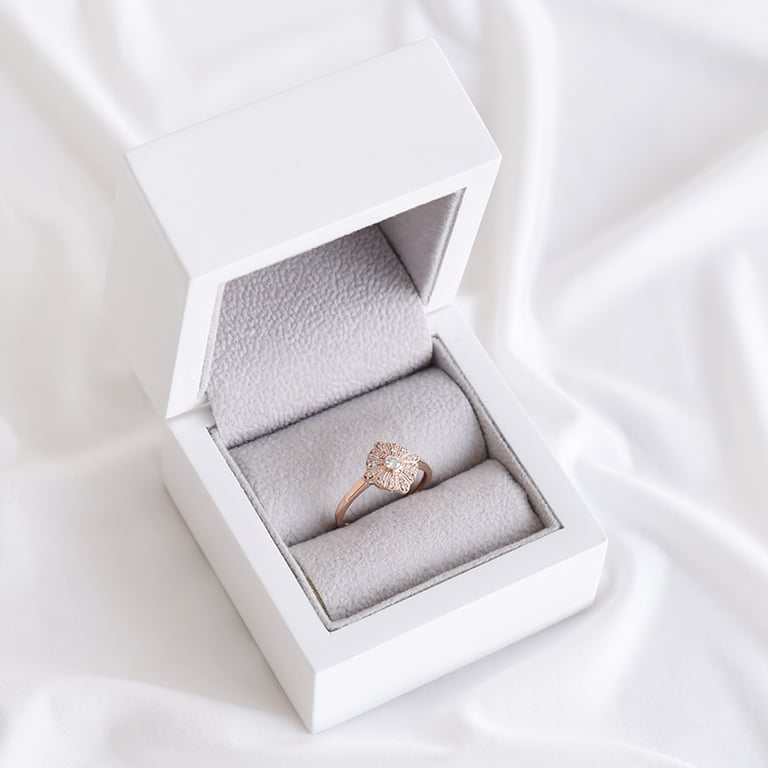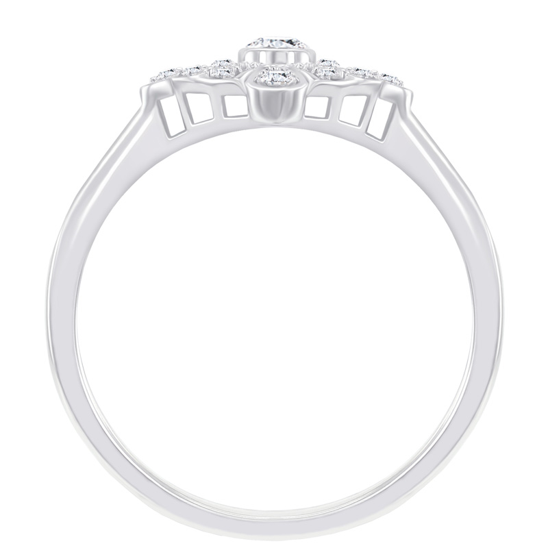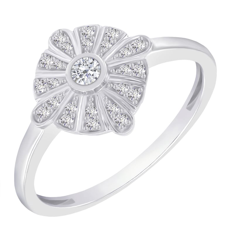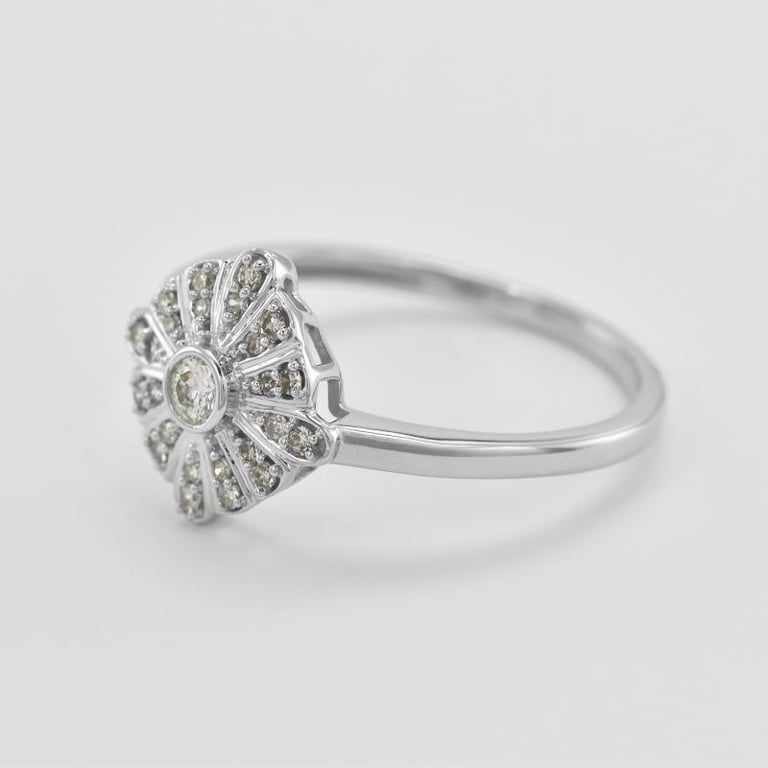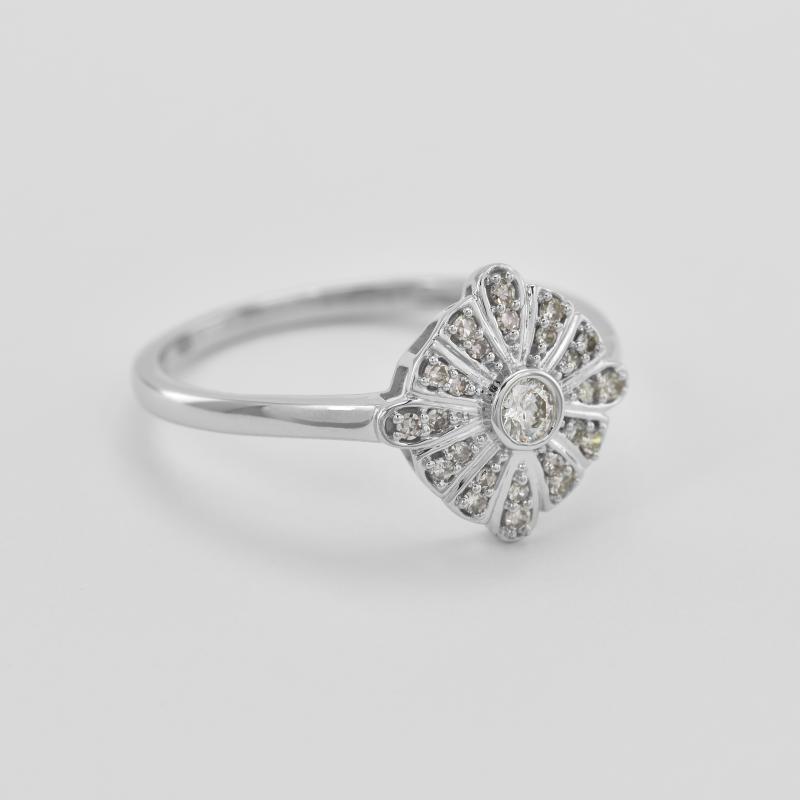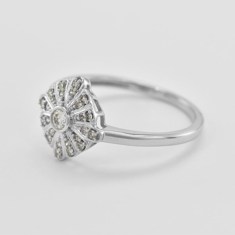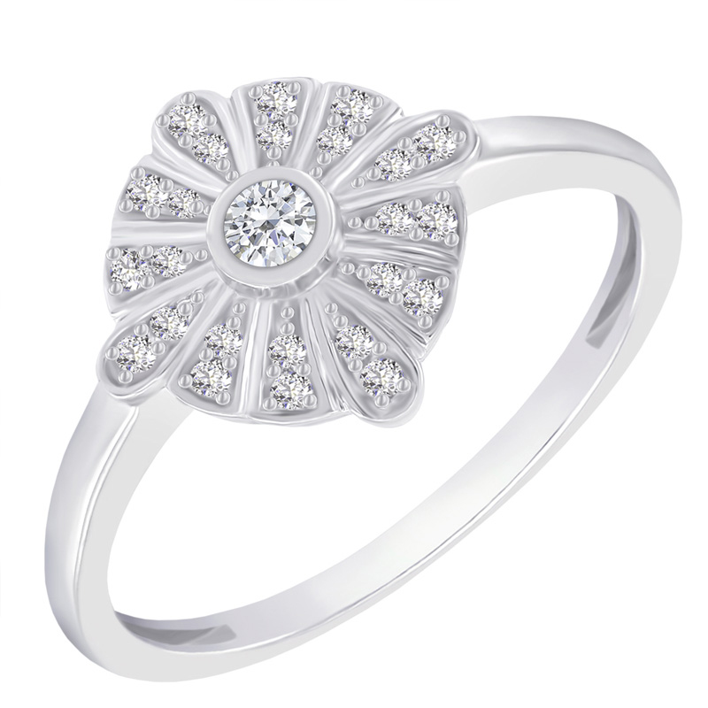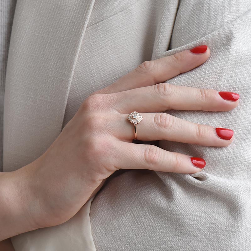 • die Mitte des eleganten Rings mit Diamanten ist mit Strahlen aus Weißgold umgeben, die Sie jeden Tag in Szene setzten werden
