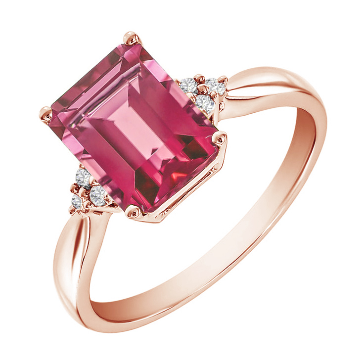 • ein rosafarbener Turmalin wird von vier Krappen gehalten, der von jeweils drei seitlichen Diamanten gehalten wird
