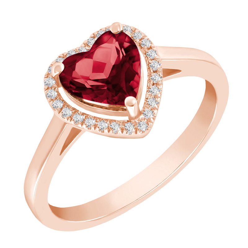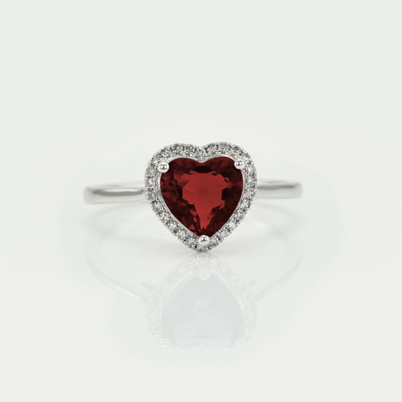 Goldring mit Granaten in Herzform und Diamanten Connelly