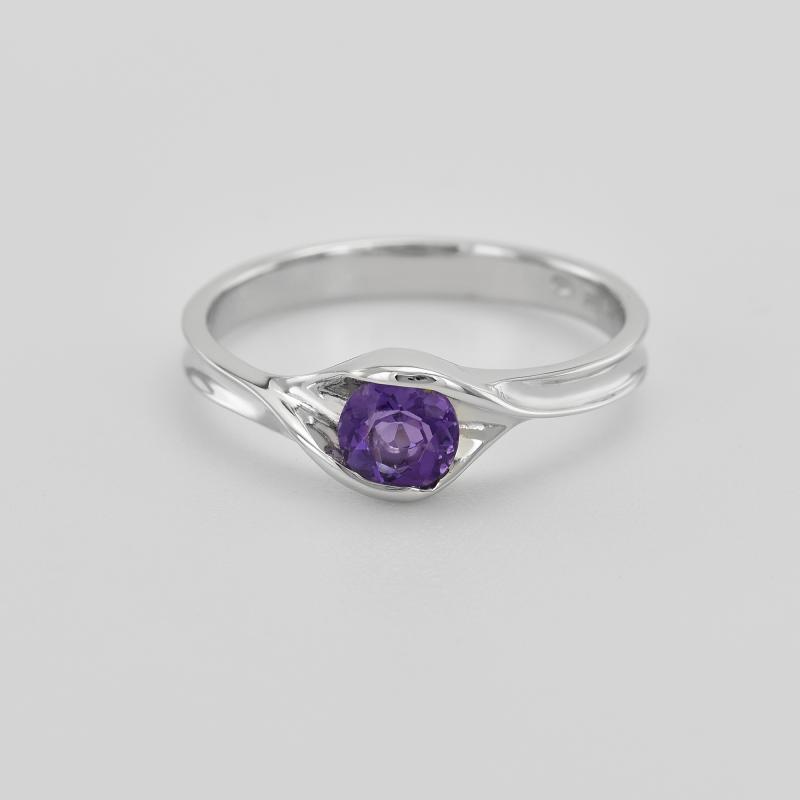 • wie in einem Auge ist hier der violette Amethyst in das Weißgold eingesetzt