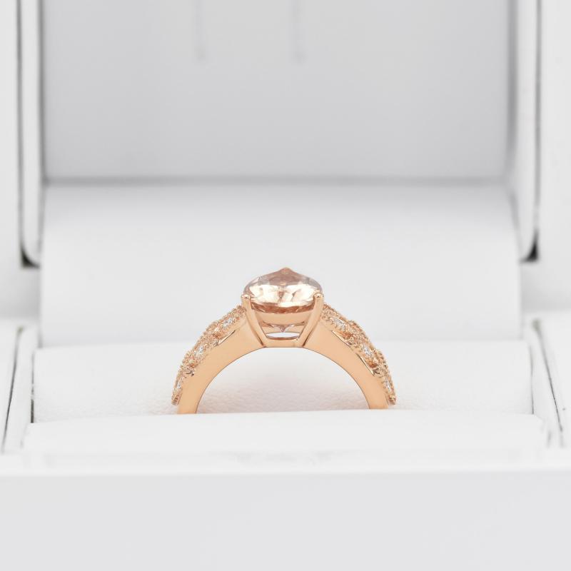 • ein extravaganter Ring in Gold mit einem birnenförmigen Morganit