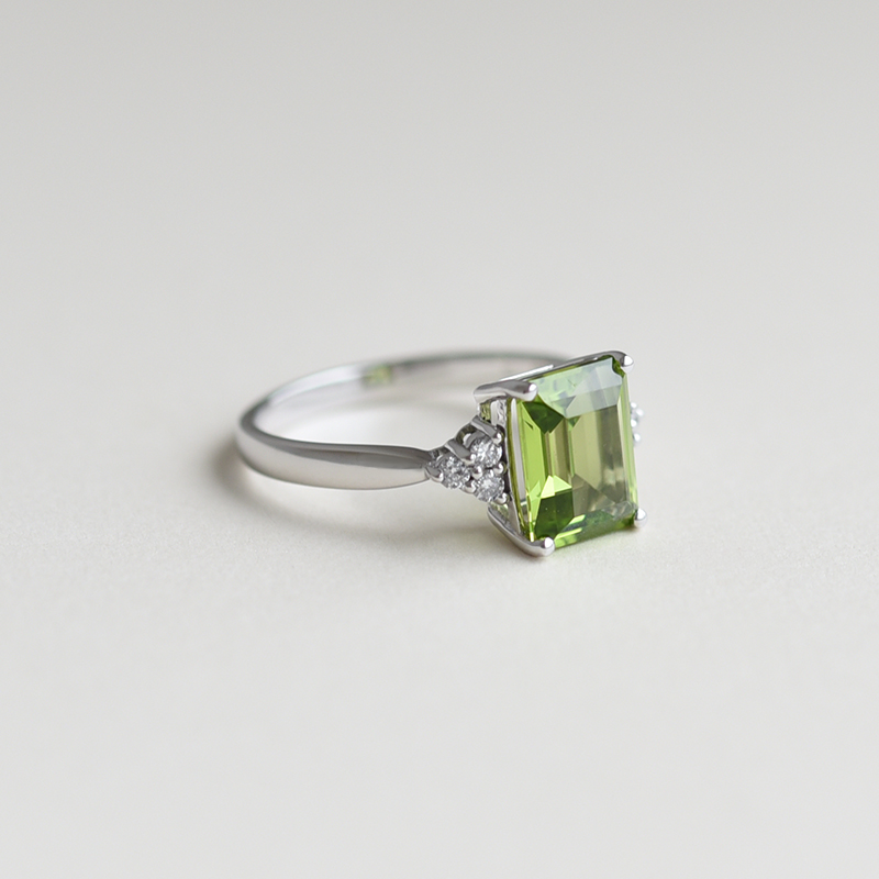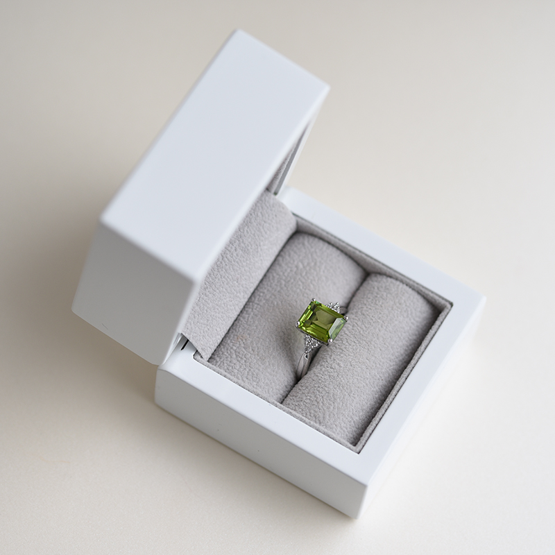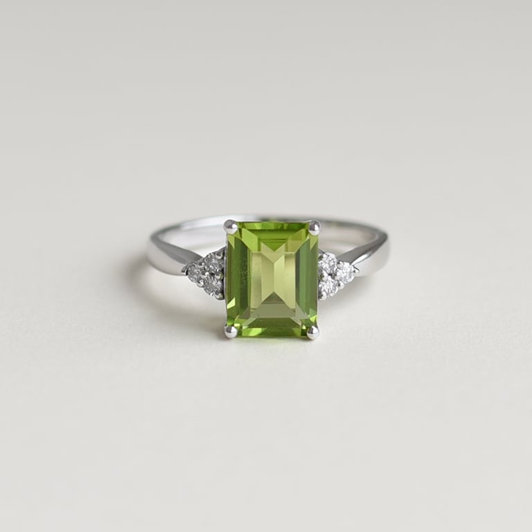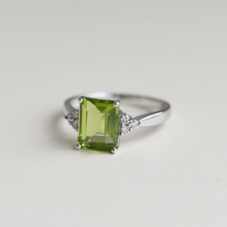 • 585er Weißgoldring mit großem Olivin als Blickfang