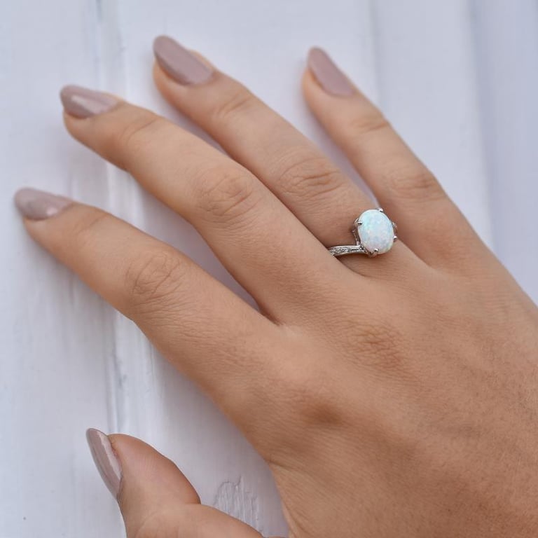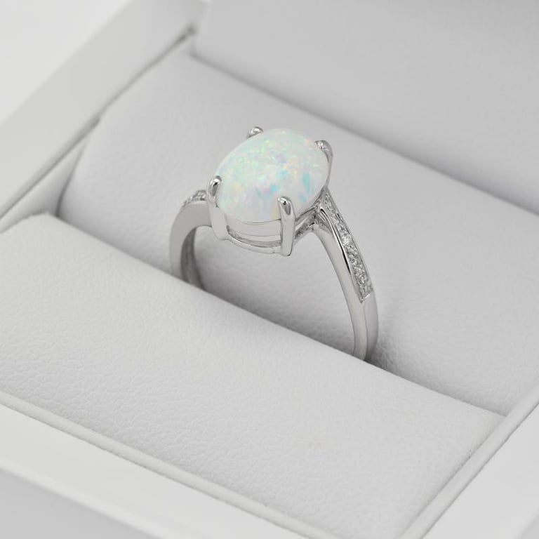 • der Ring aus Weißgold betont das Lichtspiel des glitzernden Opals