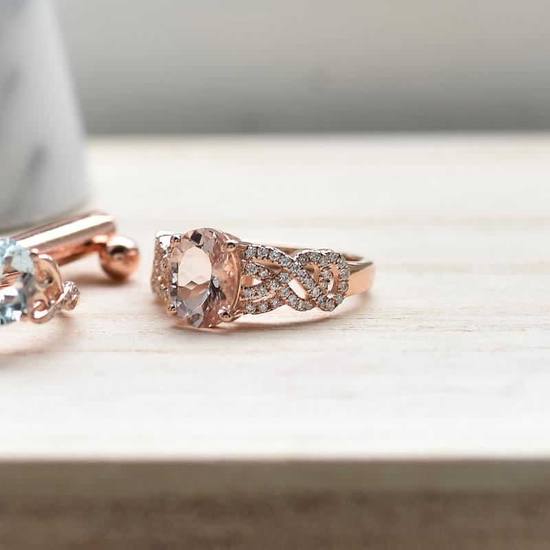 • sehr raffinerter Verlobungsring mit ovalem Morganit, der von Krappen gehalten wird