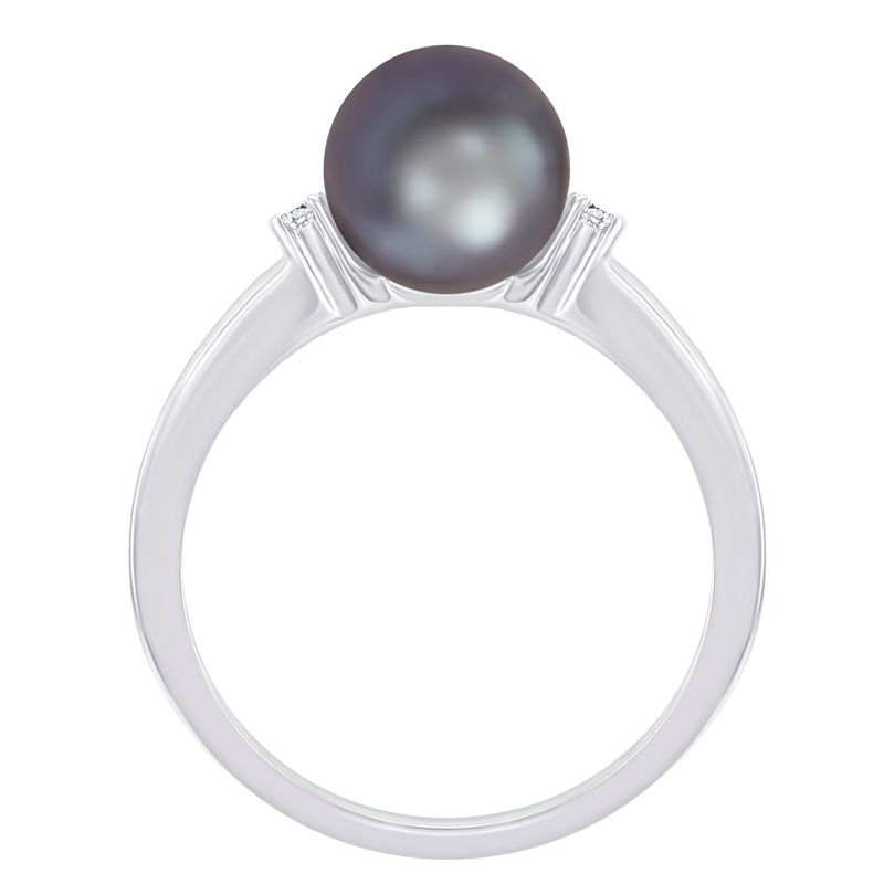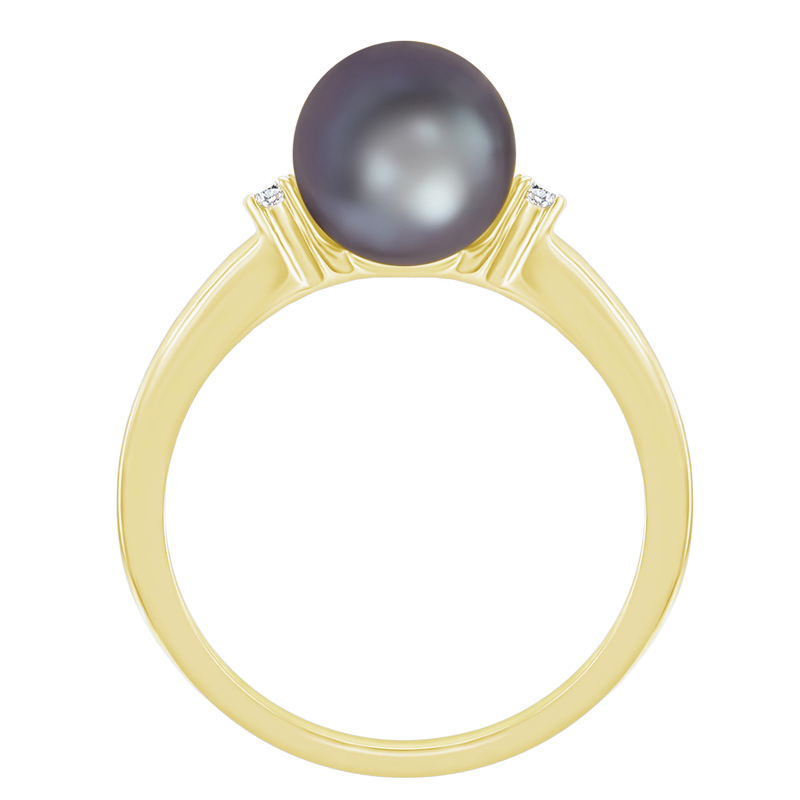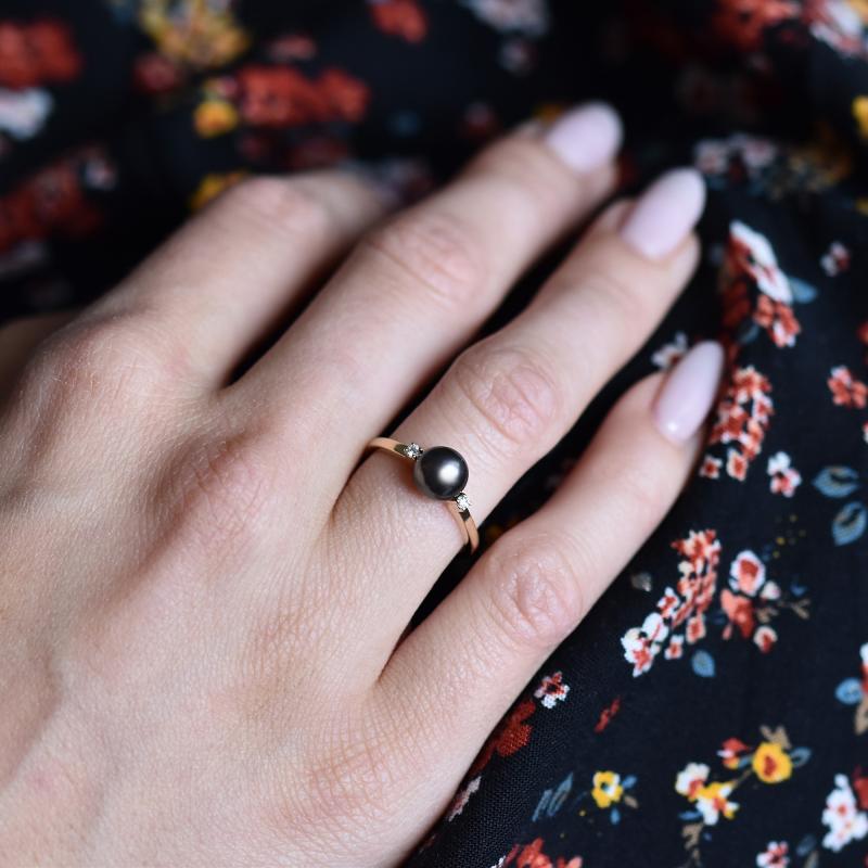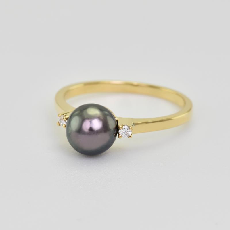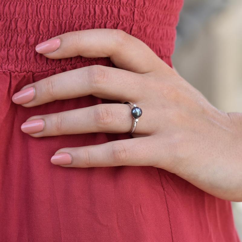 • Ring mit einer zentralen schwarzen Perle, die leicht grün schimmert