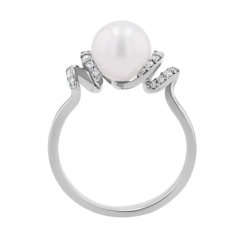 • extravaganter Goldring mit weißer Perle und Diamanten