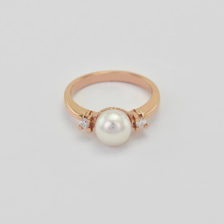 Goldring mit Perlen umgeben von Diamanten Nivrutti