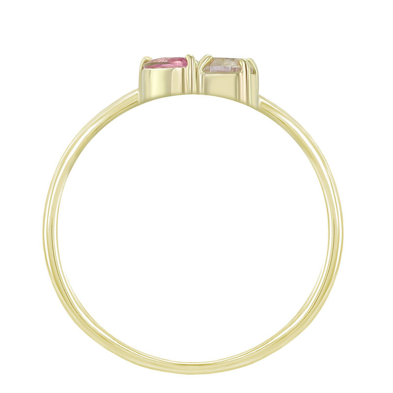 Goldring mit rosa Diamant, Tsavorit Granat und Saphir Samand