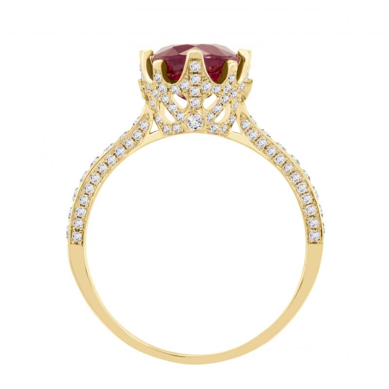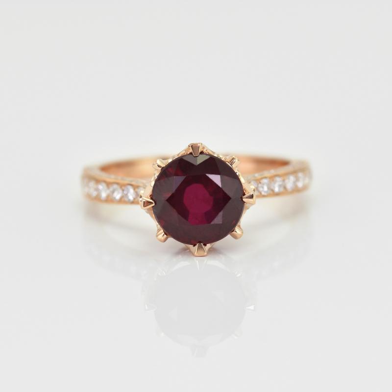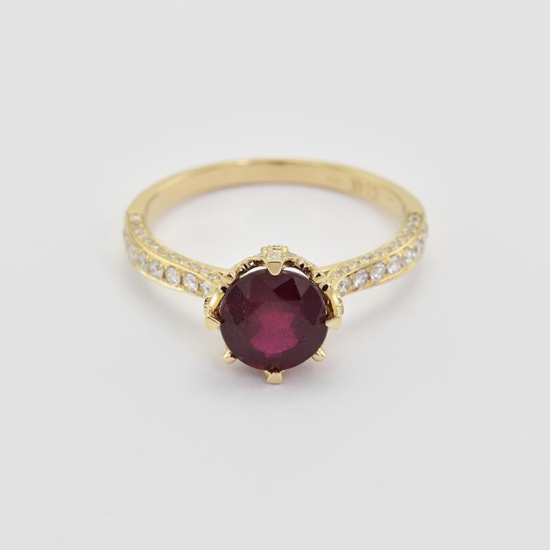 • romantischer goldener Ring mit Rubin und Diamanten, der an edle Adelsringe erinnert