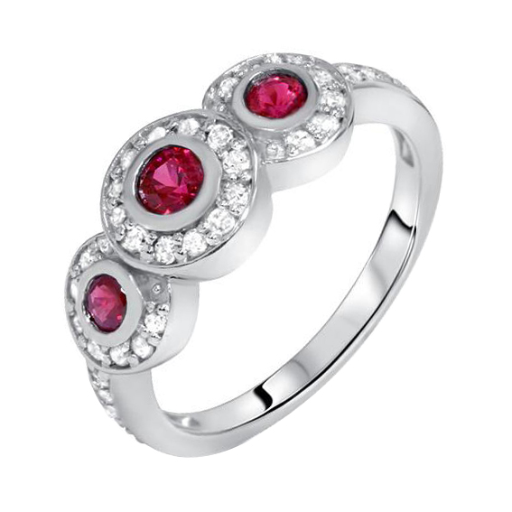 • Trio von Rubinen und Diamanten im goldenen Ring