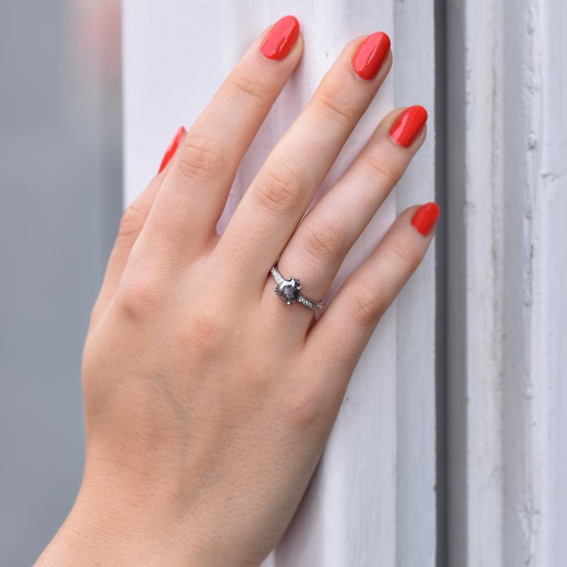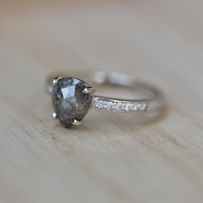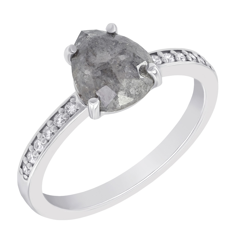 • der Salt and Pepper Diamant wird von kühlem Weißgold umarmt