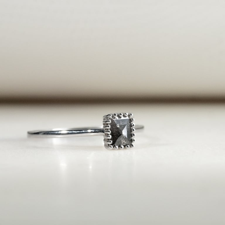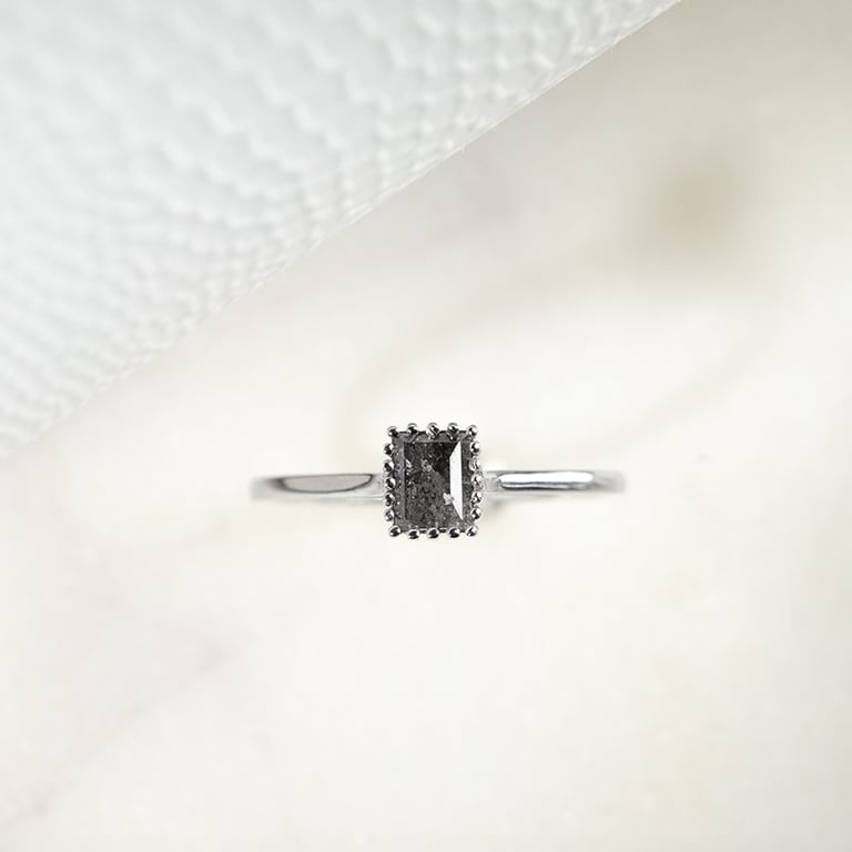 • jeder Salt and Pepper Diamant ist ein Unikat, daher kann der eingefasste Stein etwas anders sein (wir senden Ihnen gerne ein Foto von den Diamanten, die wir einsetzen könnten und Sie können dann den auswählen, der Ihnen am nächsten liegt)
