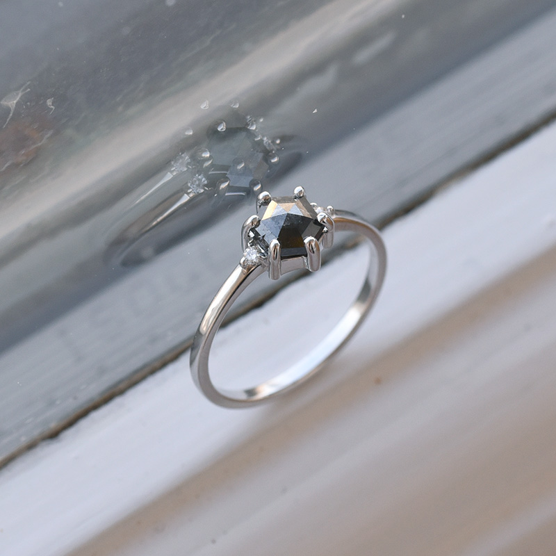 • ein Ring mit originellen Salt´n´Pepper Diamanten